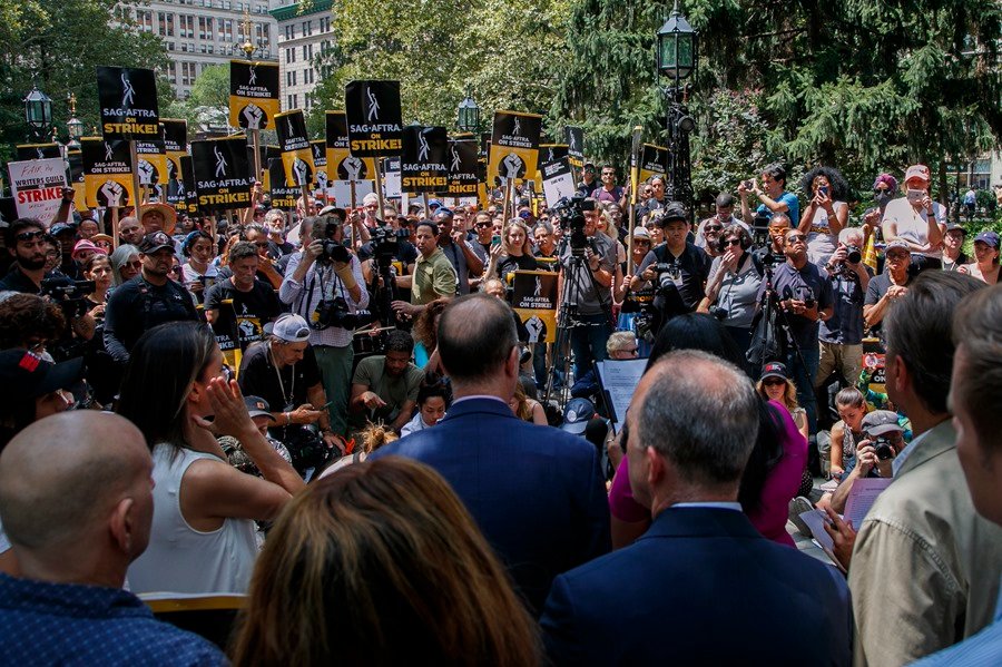 En la sesión participaron líderes y representantes del Sindicato de Actores (SAG-AFTRA) y el Sindicato de Guionistas (WGA) de EEUU, que protagonizan una huelga conjunta histórica desde hace semanas después de que ninguno lograra renovar sus convenios colectivos con Alianza de Productores de Cine y Televisión (AMPTP).