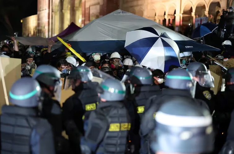 La Policía de Los Ángeles inició la operación para desmantelar los campamentos de protesta en el campus de la Universidad de California Los Ángeles, donde cientos de manifestantes contra la guerra en gaza resistieron los primeros intentos. Durante los operativos para desmantelar barricadas en el campamento de protesta, se produjeron enfrentamientos y arrestos. Elementos de la Patrulla de Carreteras de California (CHP) detuvieron a varios manifestantes, mientras que otros continuaron resistiéndose, empleando extintores de incendios contra los oficiales.