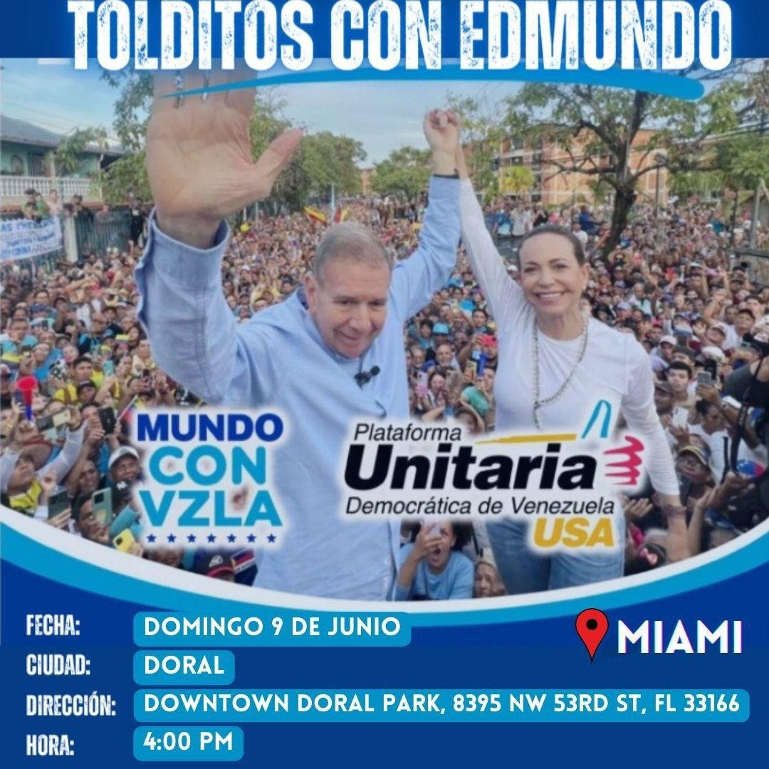 Ahora desde la Plataforma Unitaria Democrática en USA convocan a todos a reunirse este próximo domingo 9 de junio en el DownTown Doral Park, 8395 NW 53RD SR, FL 33166 a partir de las 4 de la tarde.