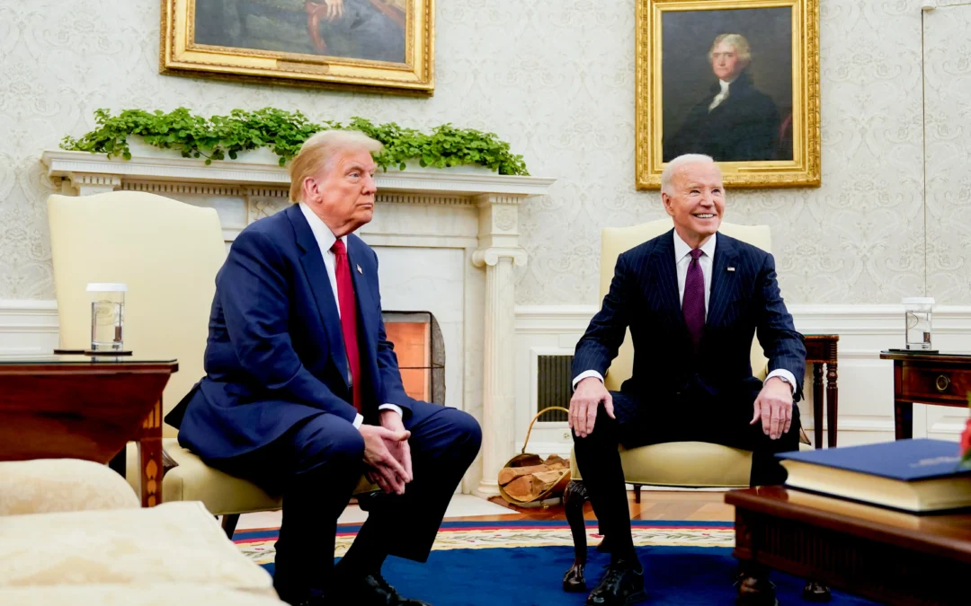“Bueno, señor presidente electo y antiguo presidente, Donald, felicidades. Espero que tengamos, como ya he dicho, una transición tranquila”, expresó Biden, mientras Trump lo escuchaba con las manos entrelazadas y ligeramente inclinado hacia adelante en su asiento.