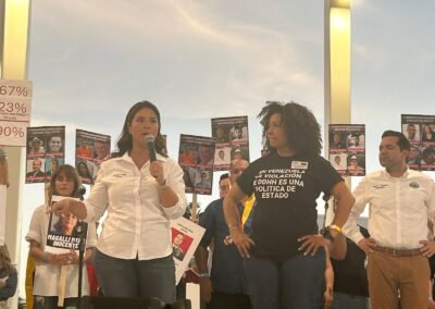 También, Eugenia Olavarria Meda, hija de Magalli Meda, jefa del comando de campaña Con Vzla, y asilada en la embajada de Argentina desde hace seis meses, pidió resistencia a los venezolanos, “este es el resultado de 15 años o más de trabajo duro”.