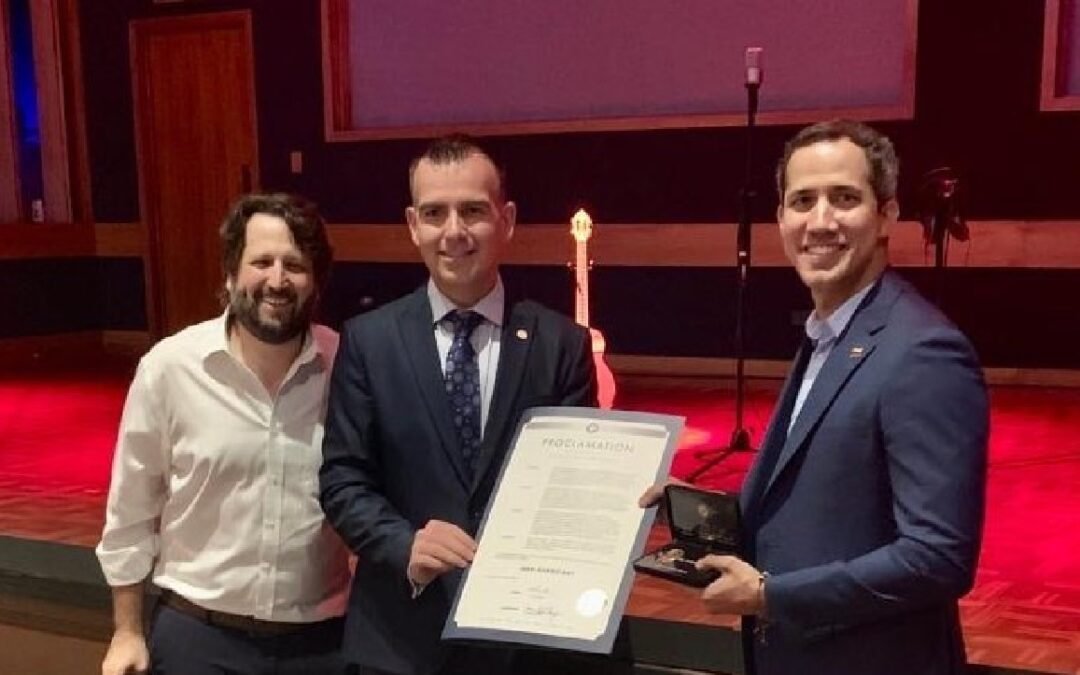 Guaidó, que ahora vive exiliado en Miami, recibió las llaves de la ciudad de manos del comisionado (concejal) Alex Fernández en un acto en el Teatro Colony al que asistieron el dirigente opositor y su familia y numerosos venezolanos radicados en Miami.