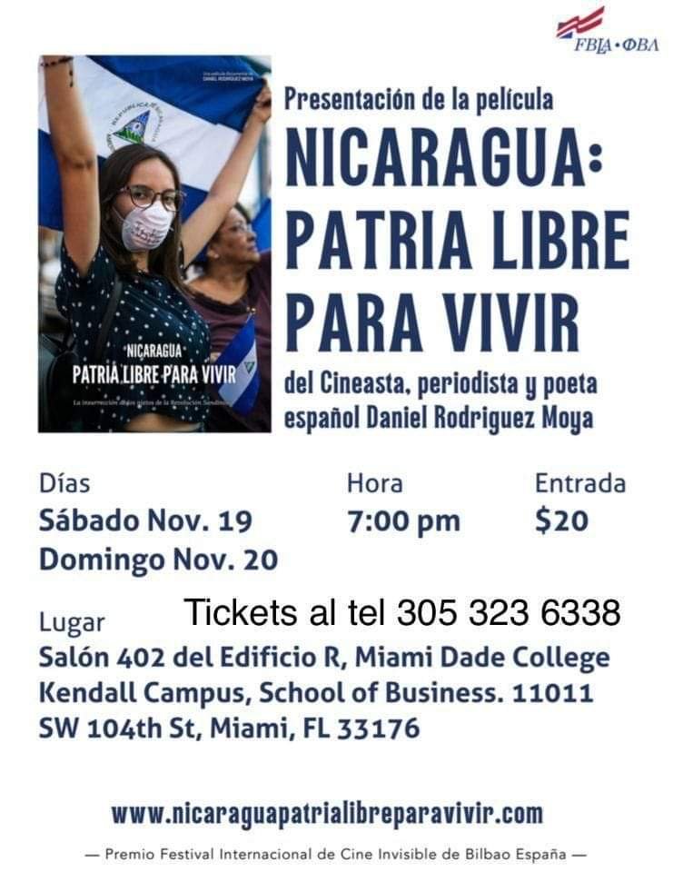 Este próximo fin de semana 19 y 20 de noviembre será presentada la película Nicaragua: patria libre para vivir del cineasta, periodista y poeta español Daniel Rodríguez Moya. En este país, una insurrección popular sin precedentes desde 1979 puso en jaque al gobierno de Daniel Ortega y Rosario Murillo, convertido en una dictadura de facto.